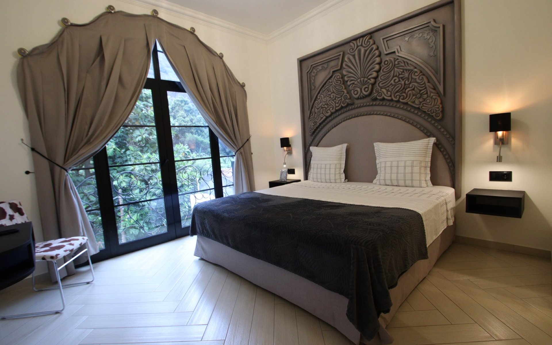 This romantic suite is pure luxury and amazing views. From this room, you will have a view of ourbvbhter pool and our botanical garden, with an outdoor restaurant. The room is equipped with a spacious and comfortable king-size bed, set against a headboard that is an exclusive piece of art crafted by a local artist. Additionally, it features a chest of drawers, wardrobe, armchairs, light spots for customizable lighting, a chandelier, and bedside lamps. The bathroom includes a glass door shower, black matte washbasin, full mirror, private toilet, and hygienic shower. Regarding amenities, you will find air conditioning, a 32” smart TV, minibar, telephone, safe, hair dryer, makeup mirror, shower gel, a robe, and a tea/coffee corner.